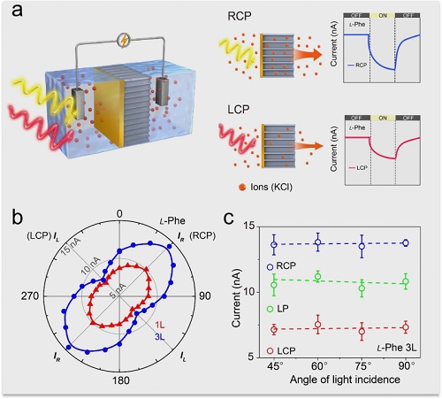 论文共同通讯作者、我校教授匡华告诉《中国科学报》:“左圆偏振光(LCP)和右圆偏振光(RCP)的区分是一个重大的科学挑战。左和右手性光子差异通常不超过百分之一。而纳米通道的限域传输为有效放大微观信号提供了潜在的可能。”